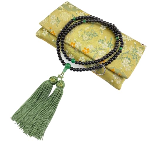 曹洞宗、女性用の正式なお数珠でございます。素材は、黒檀でございます。アクセントには、インド翡翠を使用させて頂きました。房はインド翡翠に合わせての柳色を使用させて頂きました、お洒落に仕上がっております。