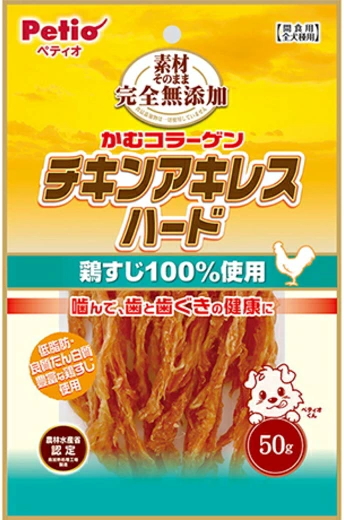 4903588143502低脂肪でコラーゲン・良質たん白質豊富な鶏すじをじっくり乾燥することで、素材本来の旨味を凝縮しました。適度な噛み心地のハード仕上げ。噛んで歯と歯ぐきの健康維持に。農林水産省認定 鳥加熱処理工場製造。