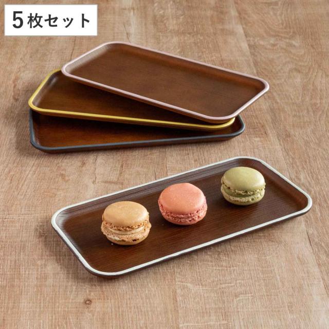 温もり感じる木目調のトレー 長角 24cm 同色5枚セット