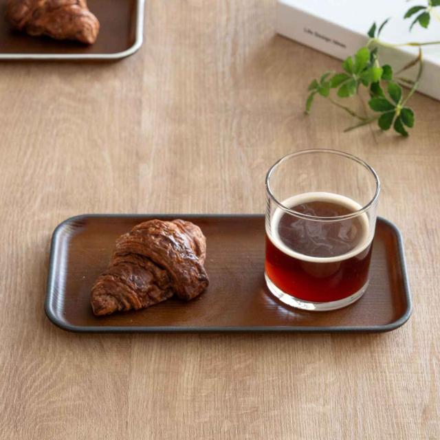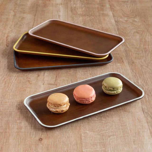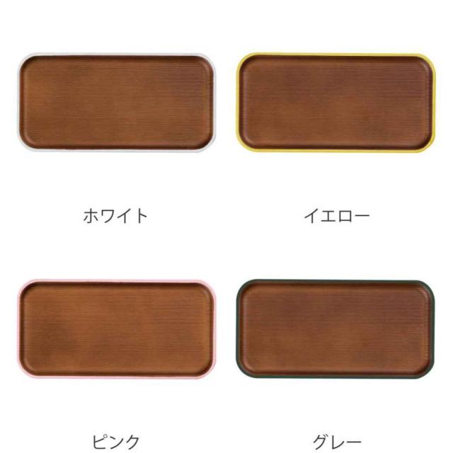 ナチュラルな雰囲気にアクセントカラーで優しさをプラスした木目調のトレーです。あたたかみのあるシンプルなデザインはどんな食卓にも馴染んでくれます。ティータイムにちょうどいい、カップとおやつを置けるぐらいのサイズ感です。