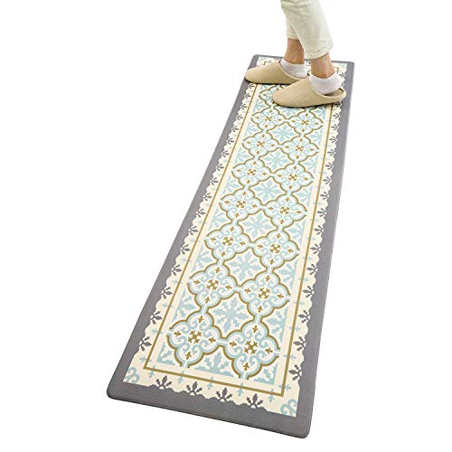 ?【厚いPVC】 足が疲れにく設計、もちもちの踏み心地でクッション性が高く台所マットです。長時間の立ち仕事も疲れにくい。このマットは素足でも、スリッパを履いたままでもいいです。物が落下しても衝撃を吸収し、床をキズやヘコミから守ります。