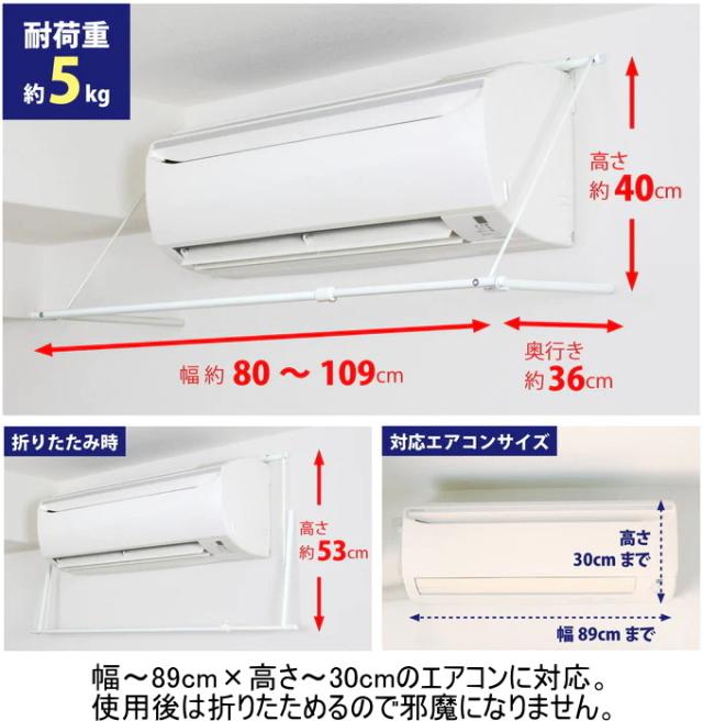 幅は89cmまで、高さは30cmまでのエアコンに取り付け可能 |