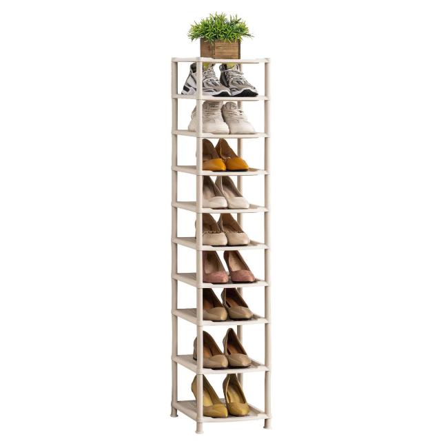 【スリム・省スペース】この縦長なシューズラックは専門に狭い場所に対応したの設計です。「サイズ:33x26x141cm」玄関、寝室、バスルーム、デパートの僅かな隙間などの場所に置くことができ、部屋をすっきり見せます。10段ラックには大人靴10足、各段に1足靴置きことができ、靴収納の需要を満たすと同時によりスペースを節約できます。一人暮らしでも家族でも、あなたに最適な選択です。