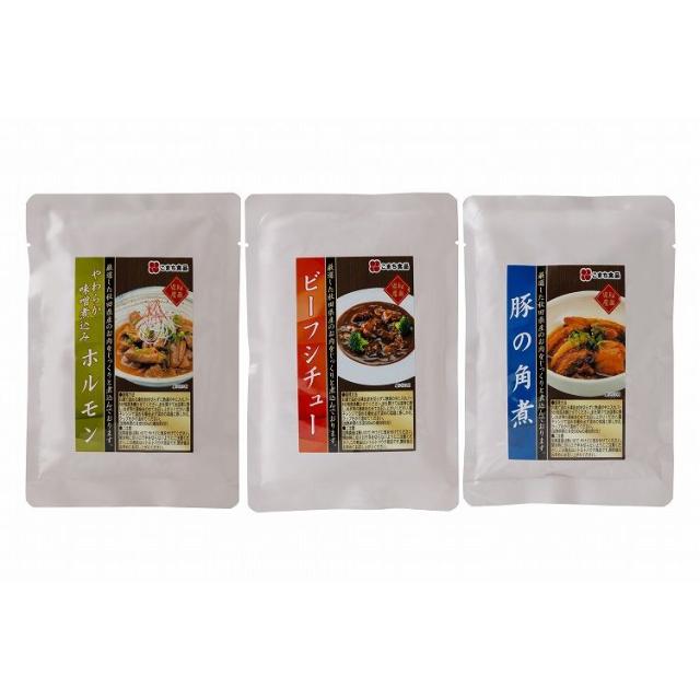 柔らか味噌煮込みホルモン200g、豚の角煮150g、ビーフシチュー170g×各1 ※ネコポス専用