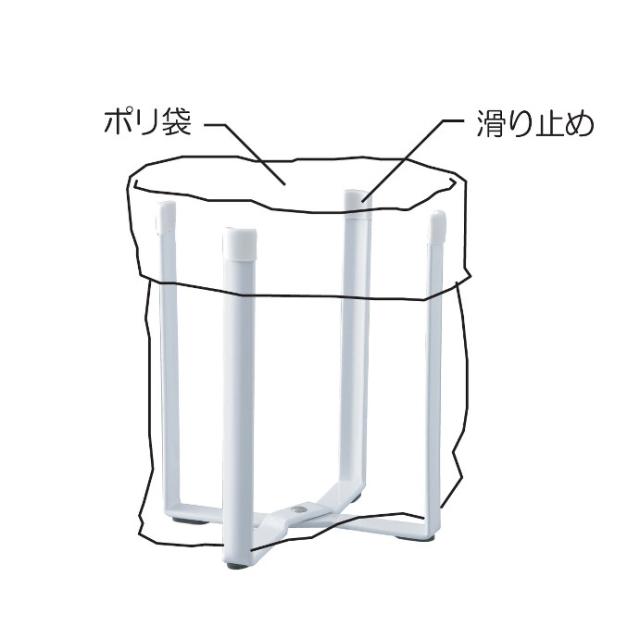 ポリ袋を掛けて調理中にでるゴミをその場でポイ!食卓やデスク上などのミニゴミ箱としても便利です。