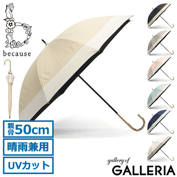 【商品レビューで+5%】because 傘 日傘 長傘 レディース 遮光 ブランド 軽量 ビコーズ かさ 軽い 晴雨兼用 シンプル おしゃれ かわいい 無地 遮熱 内側 黒 大人 手開き 親骨50cm UVカット B-935102