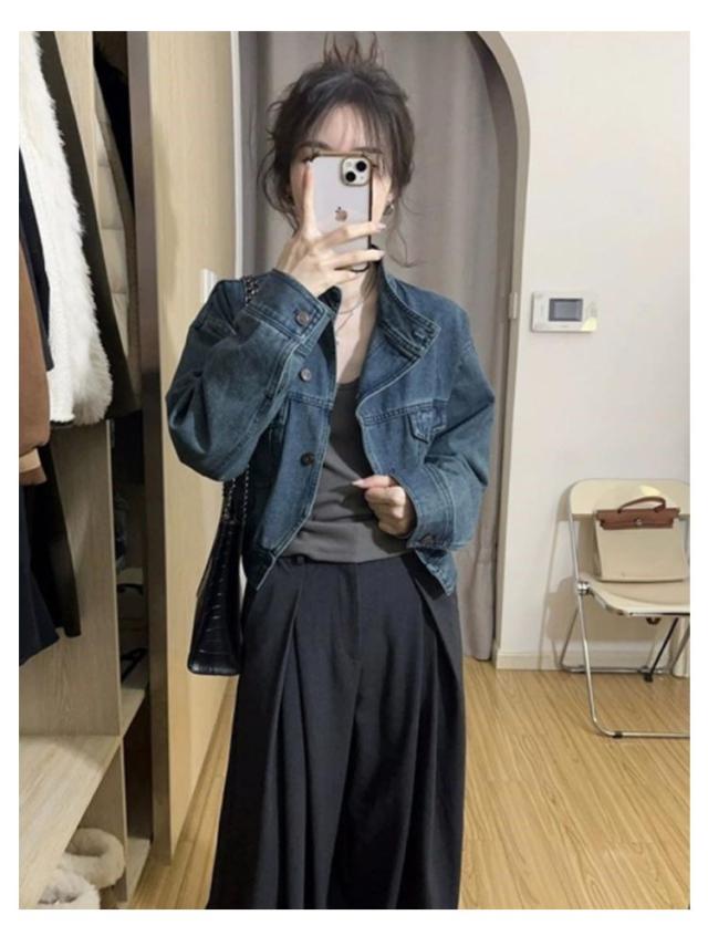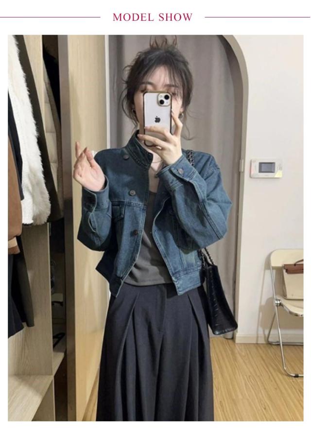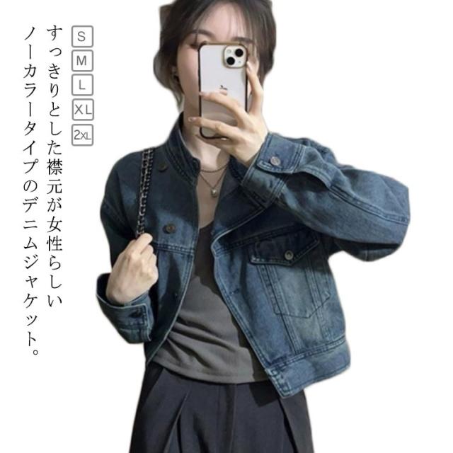 【S~2XL】 デニムジャケット ノーカラー ショート丈 Gジャン 長袖 レディース ジャケット アウター コート 羽織 ノーカラージャケット ブルゾン ジャンパー ジーンズ スタンドカラー 春 秋 冬 カジュアル 無地 大人 上品 おしゃれ きれいめ 大きいサイズ 送料無料