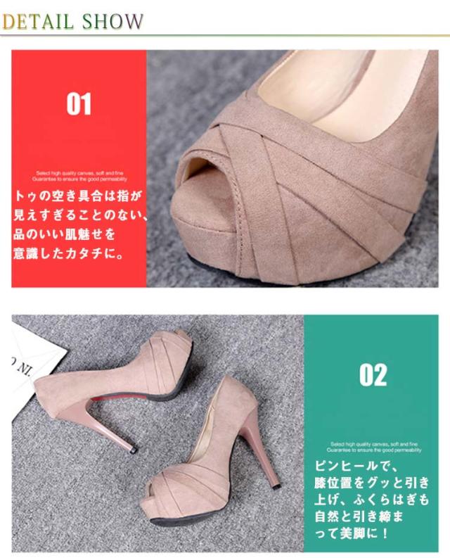 ハイヒール 美脚 パンプス レディース 靴 ヒール 12cm オープントゥ キャバサンダル 前厚 プラットフォーム 厚底サンダル セクシー エレガント キャバ嬢 大きいサイズ 小さいサイズ プラットフォーム 厚底パンプス レディース スエード調 蒸れない