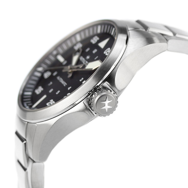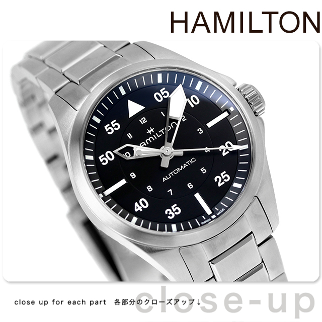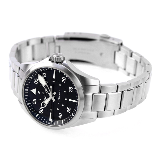 3年保証キャンペーン ハミルトン カーキ アビエーション カーキ パイロット オートマティック 36mm スイス製 メンズ 腕時計 H76215130 HAMILTON KHAKI AVIATION Khaki Pilot Auto アナログ ブラック 黒 ◆HAMILTON(ハミルトン)はアメリカ発祥の老舗ブランドです。創業翌年に誕生した懐中時計「ブロードウェイ・リミテッド」は、他の時計よりも正確に時を刻むことから鉄道用時計として採用されました。その後も航空用時計や軍用時計として採用されるなど、品質の高さと流行にながされない独自のデザインが世界中の人々に支持されています。 真の航空ファンのために作られた「カーキ パイロット」は、「カーキ」の探究心や冒険心を呼び起こします。この36mmのモデルは、ニヴァクロン製ヒゲゼンマイを備えた標準持続時間80時間のH-10自動巻きムーブメントを搭載し、より小さなサイズの腕時計を求めるトレンドに応えます。 機械式腕時計