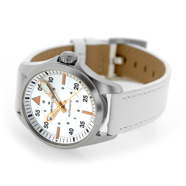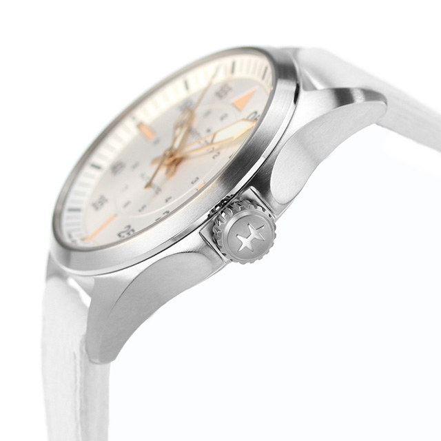3年保証キャンペーン ハミルトン カーキ アビエーション カーキ パイロット オートマティック 36mm スイス製 メンズ 腕時計 H76215850 HAMILTON KHAKI AVIATION Khaki Pilot Auto アナログ シルバー ホワイト 白 ◆HAMILTON(ハミルトン)はアメリカ発祥の老舗ブランドです。創業翌年に誕生した懐中時計「ブロードウェイ・リミテッド」は、他の時計よりも正確に時を刻むことから鉄道用時計として採用されました。その後も航空用時計や軍用時計として採用されるなど、品質の高さと流行にながされない独自のデザインが世界中の人々に支持されています。 真の航空ファンのために作られた「カーキ パイロット」は、「カーキ」の探究心や冒険心を呼び起こします。この36mmのモデルは、ニヴァクロン製ヒゲゼンマイを備えた標準持続時間80時間のH-10自動巻きムーブメントを搭載し、より小さなサイズの腕時計を求めるトレンドに応えます。 機械式腕時計