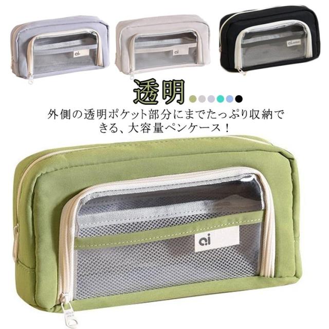 外側 透明ポケット 大容量 ペンケース 自立型 筆箱 かわいい 高校生 女子 オシャレ ふでばこ ふで箱 シンプル 文具 韓国 おしゃれ 可愛い ペンポーチ 大学生 中学生 化粧ポーチ 女性 男性 子供 レディース プレゼント 新学期 新生活 推し色 グッズ収納 透明 送料無料