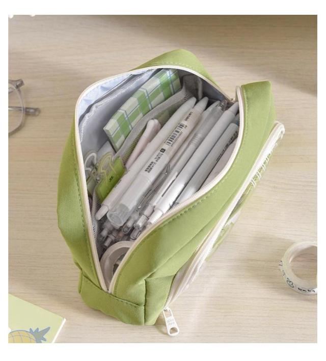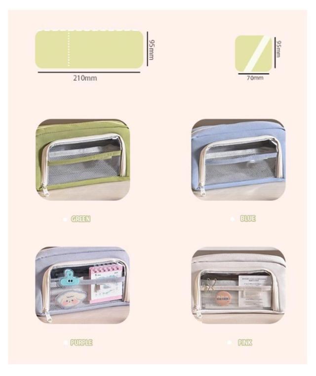 | 外側の透明ポケット部分にまでたっぷり収納できる、大容量ペンケース! トレンドの韓国っぽさたっぷりで可愛いペンケース。 しっかりとした生地と豊富カラーがおしゃれ! ペンなどの文房具やメイクブラシなど収納できます。 | |