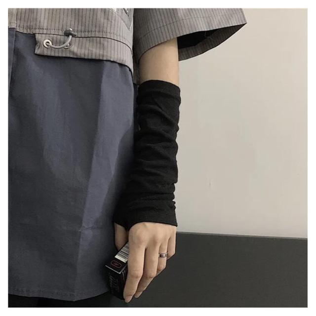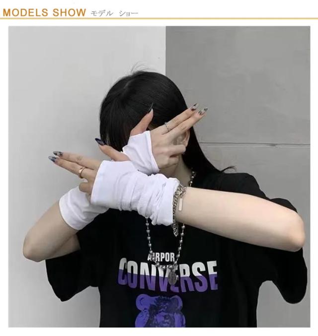 地雷系ファッション V系 レディース 痩せ 冷え対策 トゥー隠し ストレッチ ロック 保護 アームカバー uv対策 美腕 蒸れない パンク 渋谷系 歌舞伎町 派手 モード 指穴あり 病み アームウォーマー ゆめかわ ヴィジュアル系 ストリート 原宿 ゴス ロリ 病み