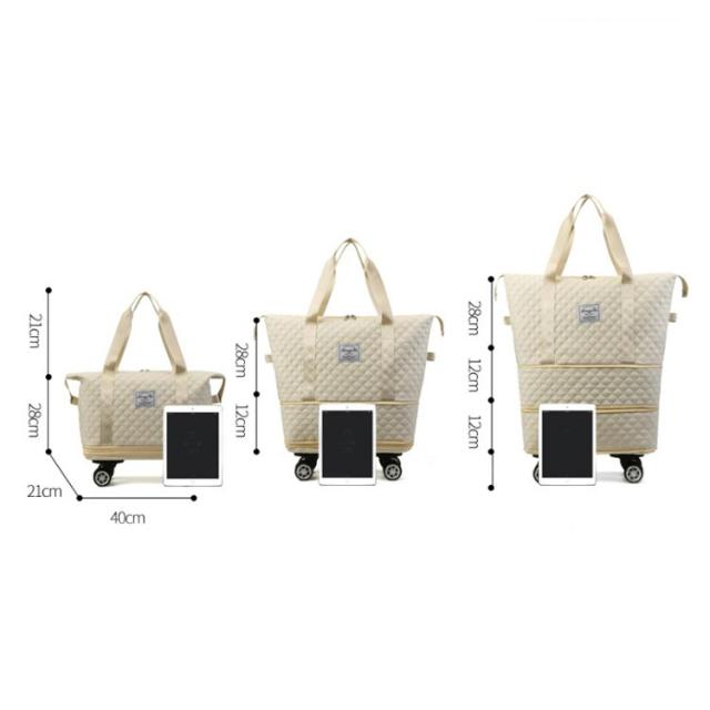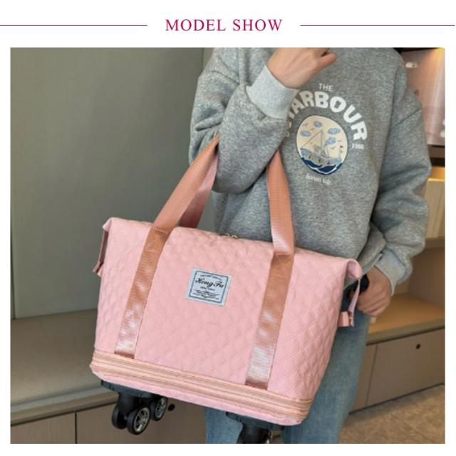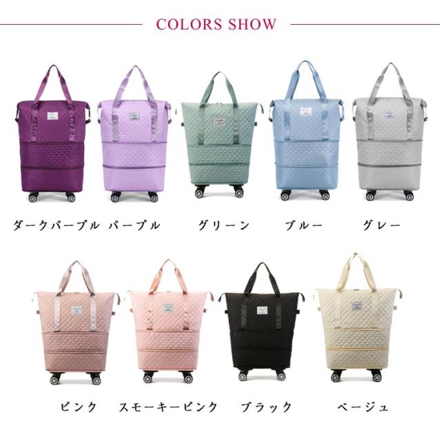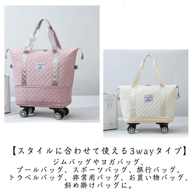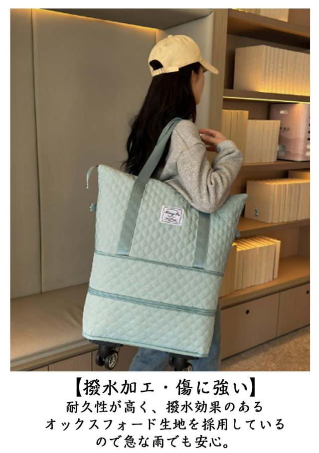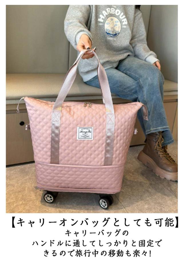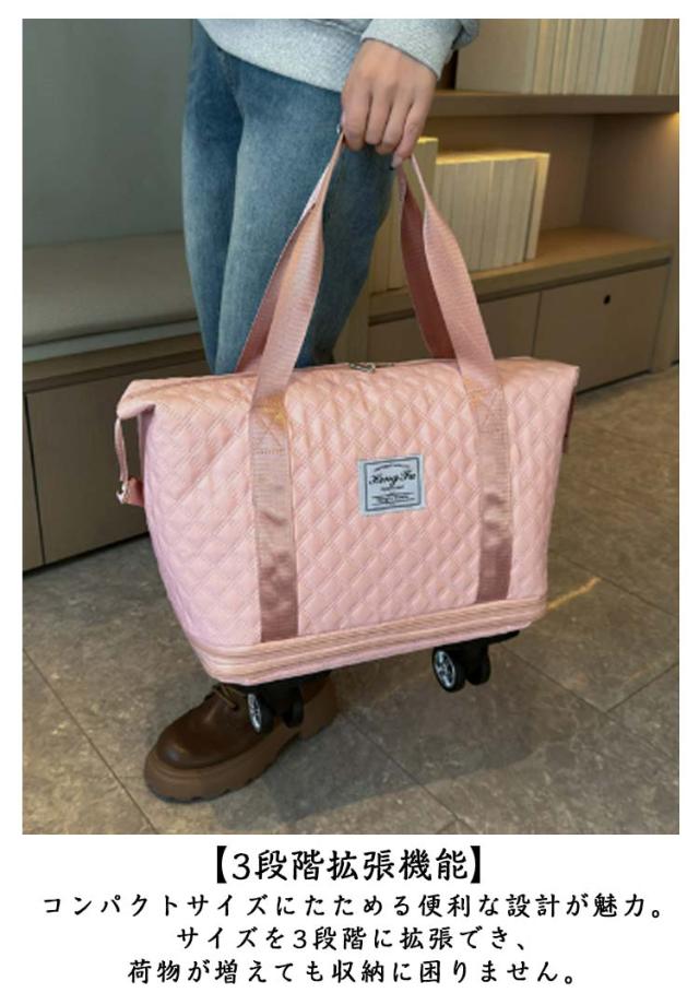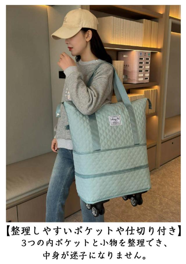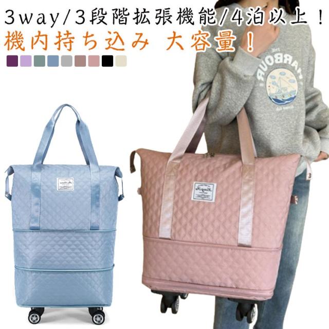 | 3way/3段階拡張機能/4泊以上! 機内持ち込み 大容量! 【3段階拡張機能】 コンパクトサイズにたためる便利な設計が魅力。サイズを3段階に拡張でき、荷物が増えても収納に困りません。 底の方は広がり、ショップ・旅行途中などでまとめて買いした時でも楽に収納できる♪短期の旅行や出張、ジム用のスポーツバッグにもおすすめ! 【静音・取り外し可能な車輪】 4つのキャスターが付いているボストンバッグは360度回転できてキャリケースのように荷物を引いて重さを気にせず持ち運ぶことが可能です。長距離移動もスムーズにできます。 ?単に取り外し可能、需要に応じて自由に解体できる、取り回しが良く使いやすい。 【キャリーオンバッグとしても可能】 キャリーバッグのハンドルに通してしっかりと固定できるので旅行中の移動も楽々! 背面ポケットはファスナ付きで、スマホや財布などの小物が収納できます。急いでいる時にも取り出しやすくて便利です。 幅が広い持ち手で重たい荷物を入れても安心! 【撥水加エ・傷に強い】 耐久性が高く、撥水効果のあるオックスフォード生地を採用しているので急な雨でも安心。上品な光沢があり、傷もつきにくく、シワもできにくい。汚れた場合は水で手洗いが可能です。 【整理しやすいポケットや仕切り付き】 3つの内ポケットと小物を整理でき、中身が迷子になりません。 乾湿分離ポケットは濡れた衣類、タオルなどわさわざピニール袋に入れなくても収納出来ます。 バッグのサイドにスナップボタンが付いているので、バッグの形を簡単に調整できます。 【スタイルに合わせて使える3wayタイプ】 手持ち、肩掛け、キャリーオンバッグとして3wayで使えます。ジムバッグやヨガバッグ、プールバッグ、スポーツバッグ、旅行バッグ、トラベルバッグ、非常用バッグ、お買い物バッグ、斜め掛けバッグに。スポーツ、アウトドア、旅行などの用途から普段使いまで、あらゆる場面でご使用いただけます。 | |