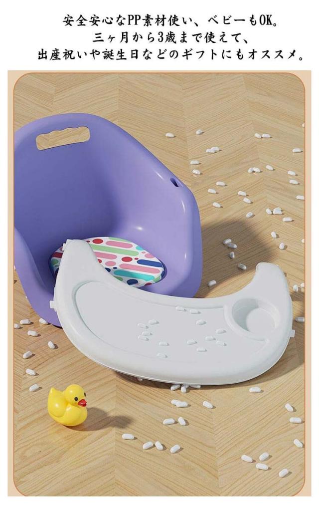 | 赤ちゃんが座れるベビーチェア。 赤ちゃんの成長期に合わせて着脱が簡単でママも安心できる。 シートはすべすべしていてささくれがありません。赤ちゃんの幼い肌を傷つけません。 底の口笛の設計でかわいい声を出して、赤ちゃんの興味を励ますクッションを採用し座るだけで音が出る。 人間工学の背もたれの設計、赤ちゃんの背骨の曲線に合って背骨の正常な発育を保護します。 2段に分かれたプレート、遊びと食事を両立させます。 赤ちゃんの食事が終わった後は、1段目を外して洗います。2段目はおもちゃで遊ぶことができ、面倒を見る手間が省けます。 安全安心なPP素材使い、ベビーもOK。三ヶ月から3歳まで使えて、出産祝いや誕生日などのギフトにもオススメ。 | |