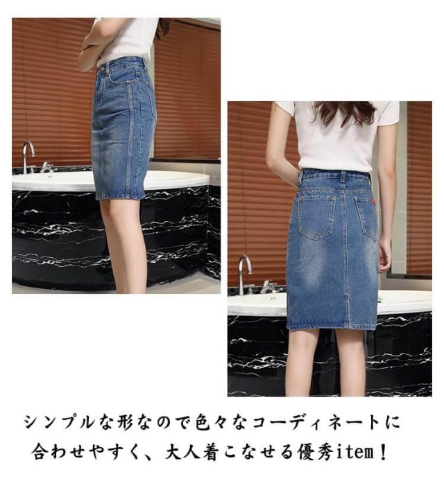 デニムスカート デニムタイトスカート 膝丈 デニムスカート ハイウエスト タイトスカート デニム ペンシルスカート ミディアム丈 通勤 大きサイズ