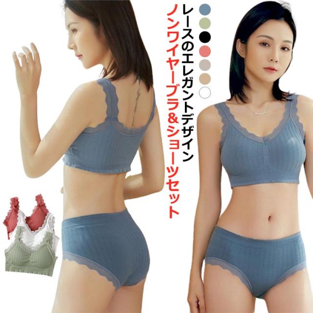 ノンワイヤー ショーツ ノンワイヤーブラ 幅広肩紐 ノンワイヤーブラ ブラ ショーツ ブラ 上下セット セット ブラセット ナイトブラ 育乳 かわいい セット ブラジャー 下着 レディース ブラ 脇高 脇肉