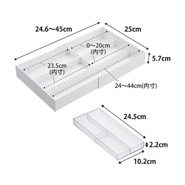 ●商品サイズ:約W25×D24.6〜45×H5.7cm 上段トレーサイズ:約W24.5×D10.2×H2.2cm