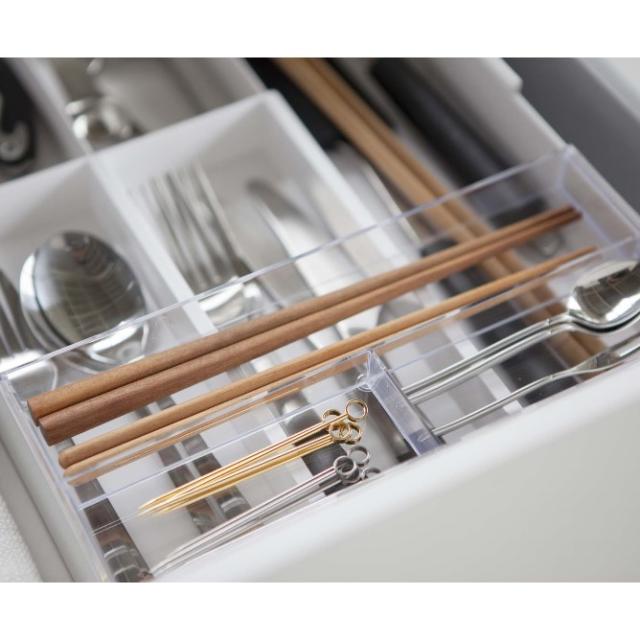 伸縮できるから引き出しのサイズに合わせてピッタリフィットするカトラリートレー!