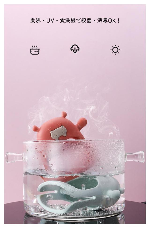 | 手首にスッポリはめるタイプ 【安全素材】 シリコンだから舐めても口に入れても大丈夫!柔らかくて、耐久性のあるおしゃぶりホルダー。 指しゃぶり防止・おしゃぶり・おもちゃの3役をこなすペンギンタイプ。 【手首で落ちにくい】手首にスッポリはめるタイプなので、握る力弱い赤ちゃんでも落としにくく、一人遊びにしっかり集中してくれます。 【指しゃぶり防止】 2種類の歯茎マッサージで、お子様のお好みによおって歯茎のむず痒さを緩和してくれます。 【お手入れ簡単】 煮沸・UV・食洗機で殺菌・消毒OK! | |