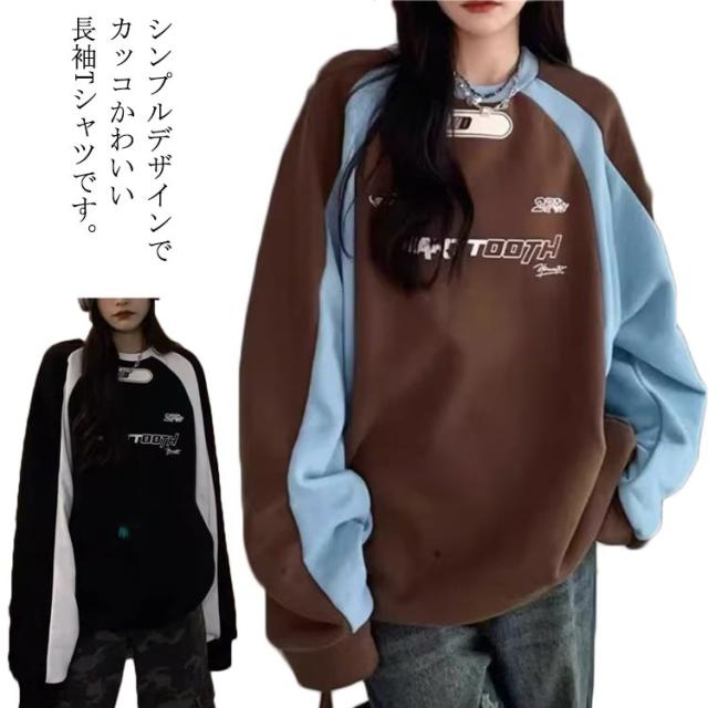 レディース 長袖 トップス 韓国服 スウェット ロンt 長袖tシャツ 春秋 薄手 カットソー トレーナー ゆったり 体型カバー オーバーサイズ クルーネック おしゃれ ロゴ レディース シンプル