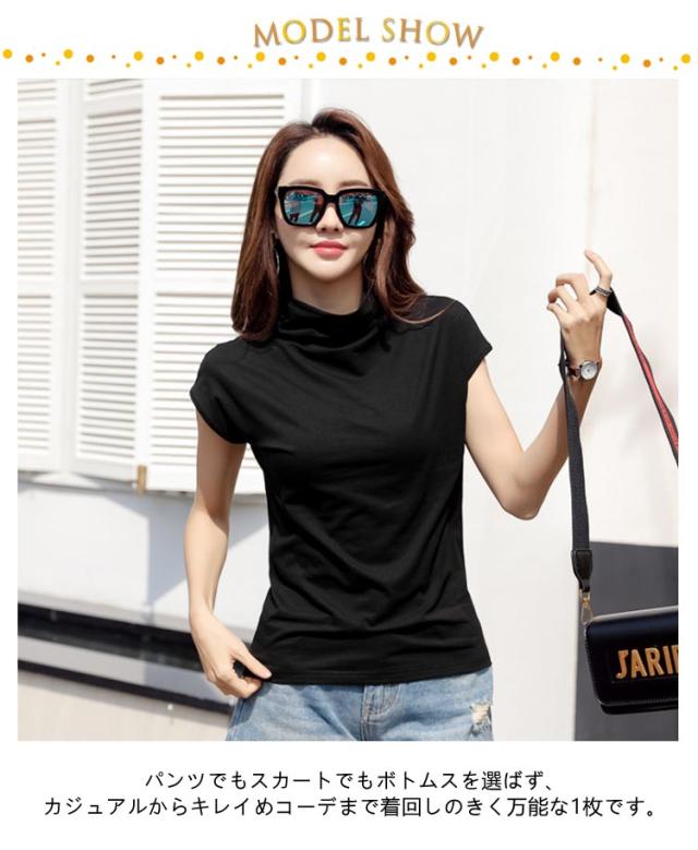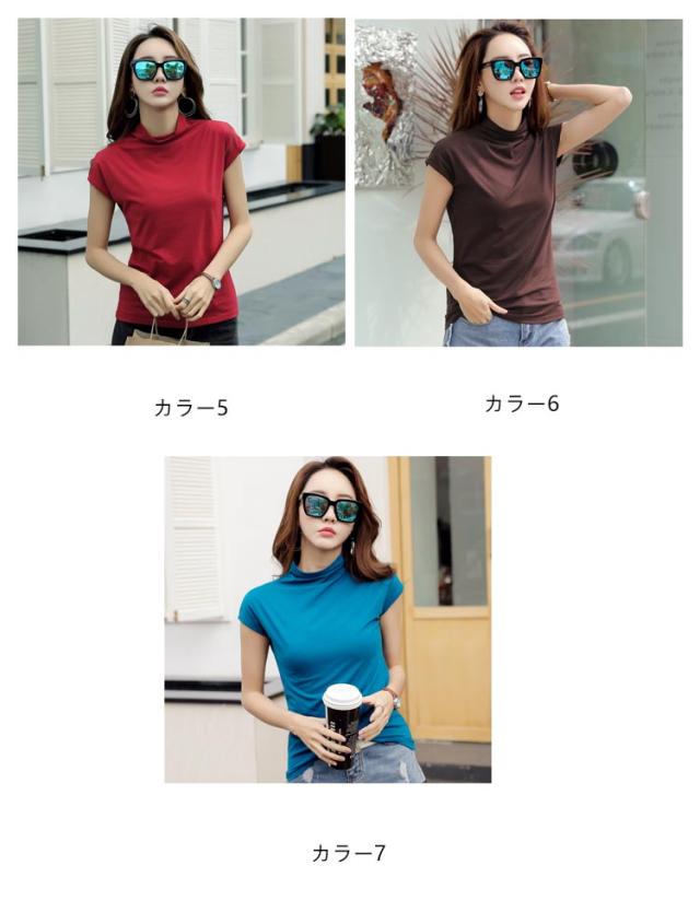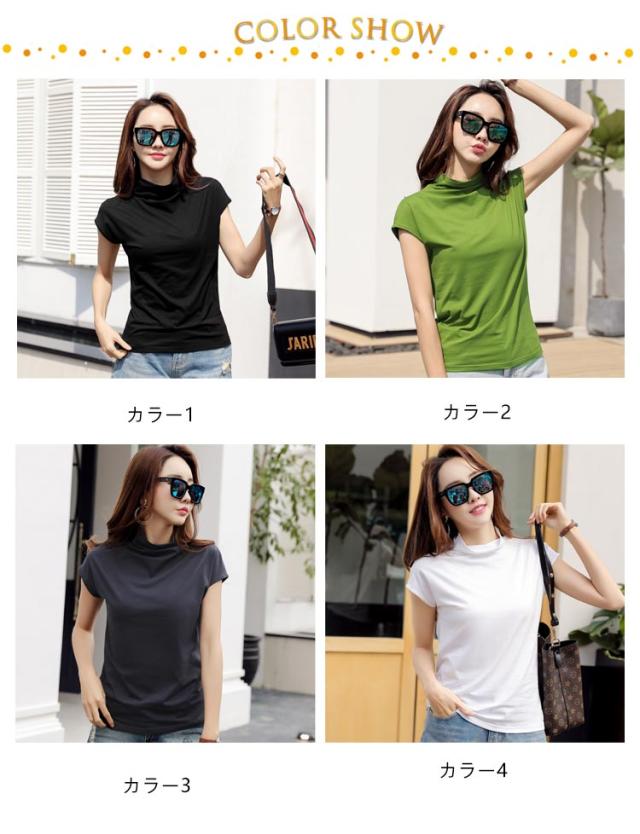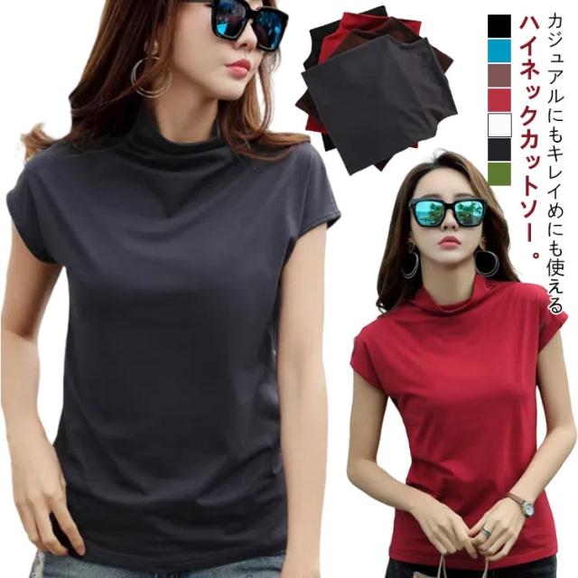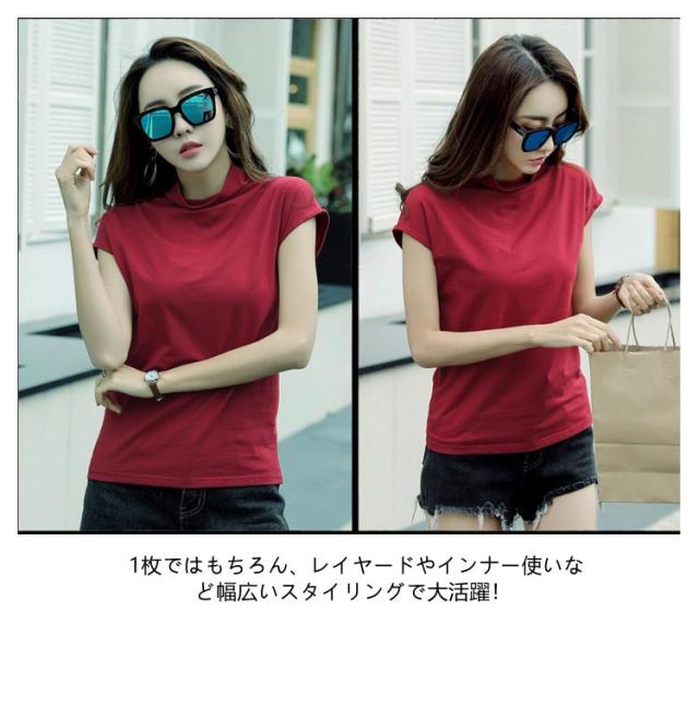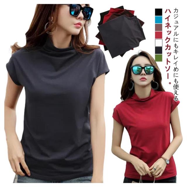 フレンチスリーブ 無地tシャツ ハイネック tシャツ Tシャツ トップス レディース フレンチスリーブ ノースリーブ S 女性 春夏 着やせ タイト おしゃれ 大人 M L XL 2XL