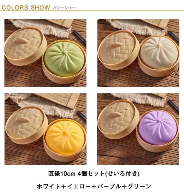 | サイズについての説明 | 直径10cm 4個セット(せいろ付き) ホワイト+イエロー+パープル+グリーン |