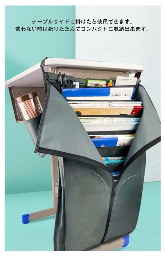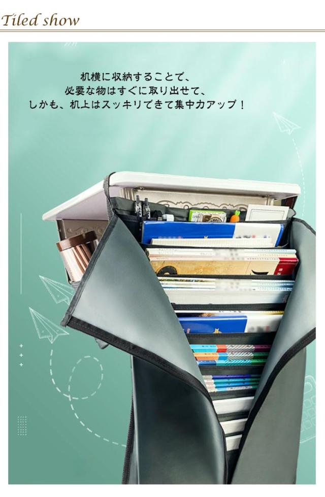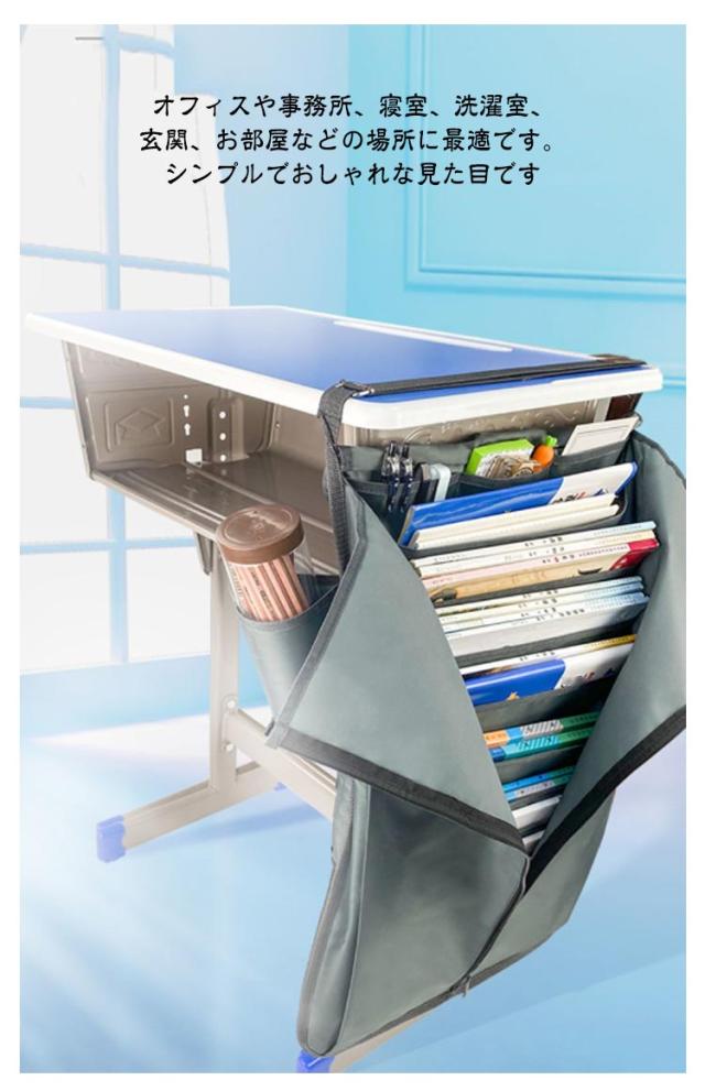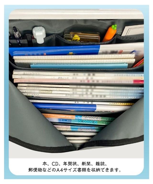 | 机横に収納することで、必要な物はすぐに取り出せて、しかも、机上はスッキリできて集中力アップ! 本、CD、年賀状、新聞、雑誌、郵便物などのA4サイズ書類を収納できます。 オフィスや事務所、寝室、洗濯室、玄関、お部屋などの場所に最適です。シンプルでおしゃれな見た目です テーブルサイドに掛けたら使用できます。使わない時は折りたたんでコンパクトに収納出来ます。 | |