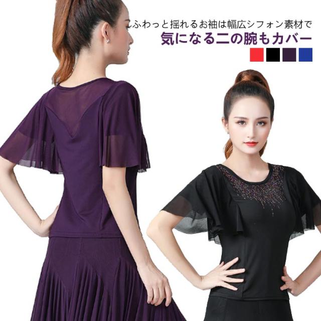 | ・エレガントで優雅な雰囲気。 ・ふわっと揺れるお袖は幅広シフォン素材で気になる二の腕もカバー。 ・透け感もあるので暑苦しさはなく、美しく着こなせます。 ・社交ダンス・フラメンコ・フラダンスなど、動きやすくレッスンや衣装におすすめです♪ | |