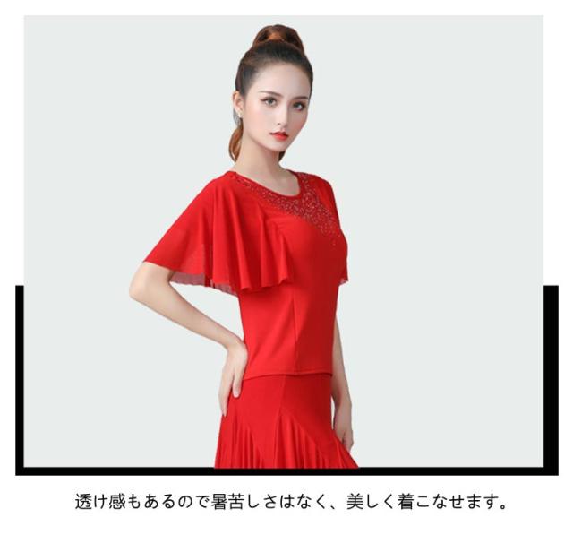コーラス衣装 社交ダンス フリル袖 スリーブ 社交ダンス フリル 発表会 ラテンダンス 衣装 スパンコール 練習着 シースルー 団体演出服 フラメンコ 発表会 パーティー お呼ばれ 練習 レッスン