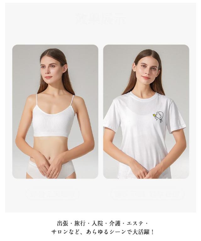 | ストレッチ性抜群の使い捨てブラ。 3枚セット 締め付けのないやさしい着心地でストレスフリー。 脇高設計でハミ肉をしっかりキャッチ。 1枚ずつ個別包装されており衛生的です。 出張・旅行・入院・介護・エステ・サロンなど、あらゆるシーンで大活躍! 小さくて軽いので持ち運びに便利です。カバンに入れて携帯できます。 | |