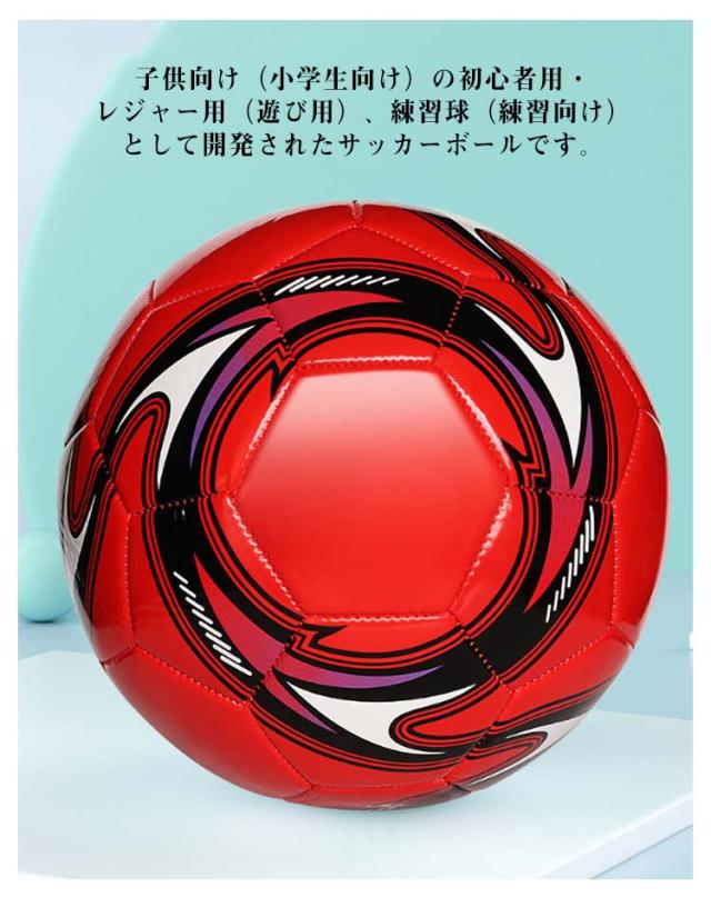 | サッカーボール4号球。 子供向け(小学生向け)の初心者用・レジャー用(遊び用)、練習球(練習向け)として開発されたサッカーボールです。 カッコいいデザイン!この目立つカラフルなカラーリングはサッカーをより楽しくさせます! 空気入りですぐに遊べます!お子様へのプレゼントに!家族や友達同士でも楽しめます! | |