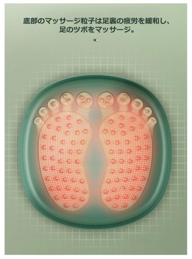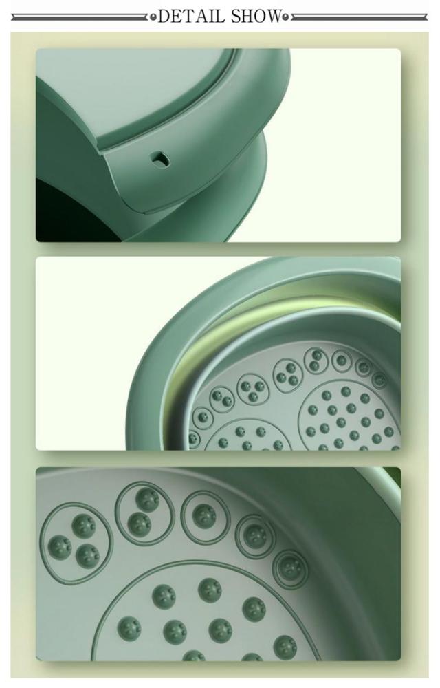 | 折りたたんだ後はコンパクトなボディであり、さまざまなシーンに適用できます。 底部のマッサージ粒子は足裏の疲労を緩和し、足のツボをマッサージ 深いバケツ型の足浴で、足首までカバー 足を浸しながらテレビ番組が見られる。 | |