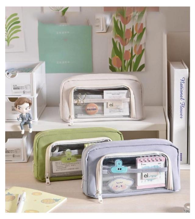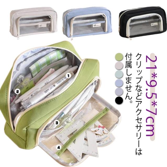 自立型 クリアポケット付き 高校生女子 透明 かわいい シンプル 韓国 オシャレ 大容量 大容量 筆入れ プレゼント 筆箱 可愛い スリムポーチ 大学生 中学生 クリアポケット付き 新学期