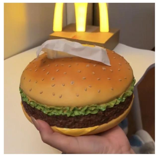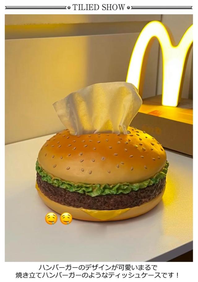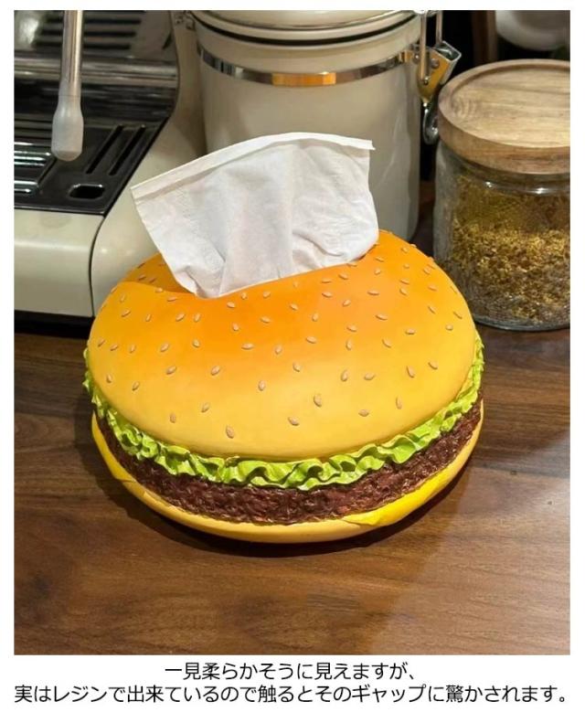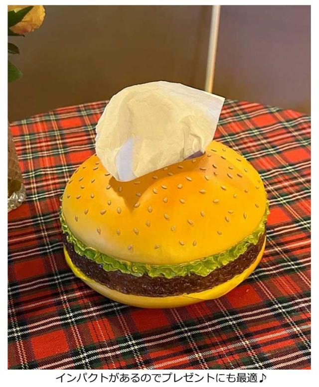 | ハンバーガーのデザインが可愛いまるで焼き立てハンバーガーのようなティッシュケースです! 一見柔らかそうに見えますが、実はレジンで出来ているので触るとそのギャップに驚かされます。 インパクトがあるのでプレゼントにも最適♪ | |