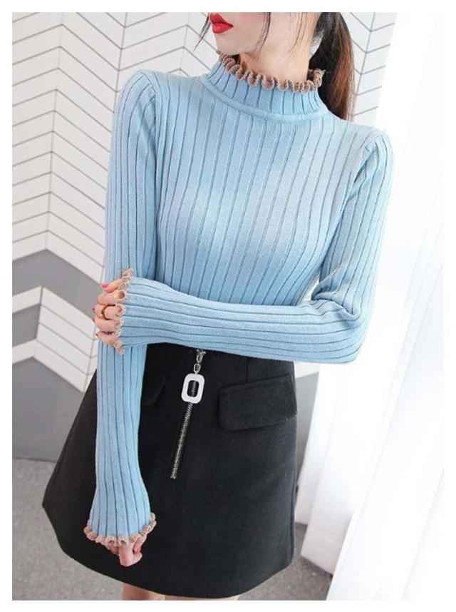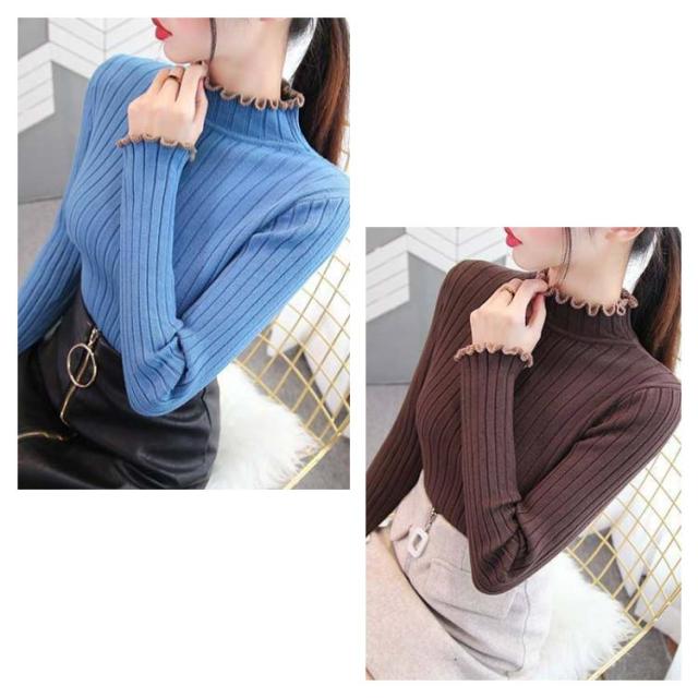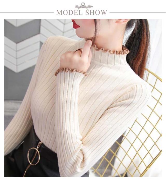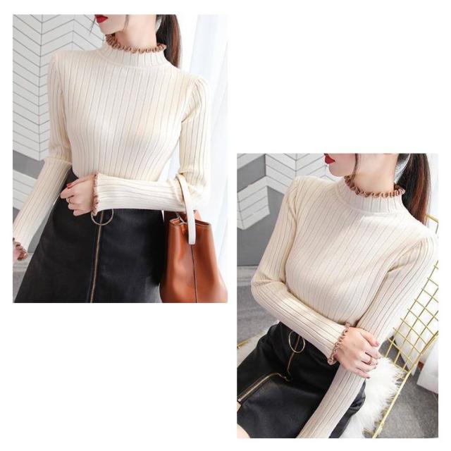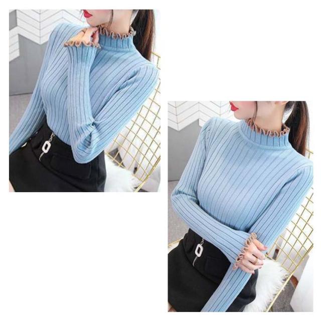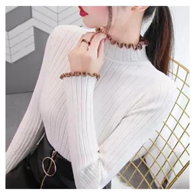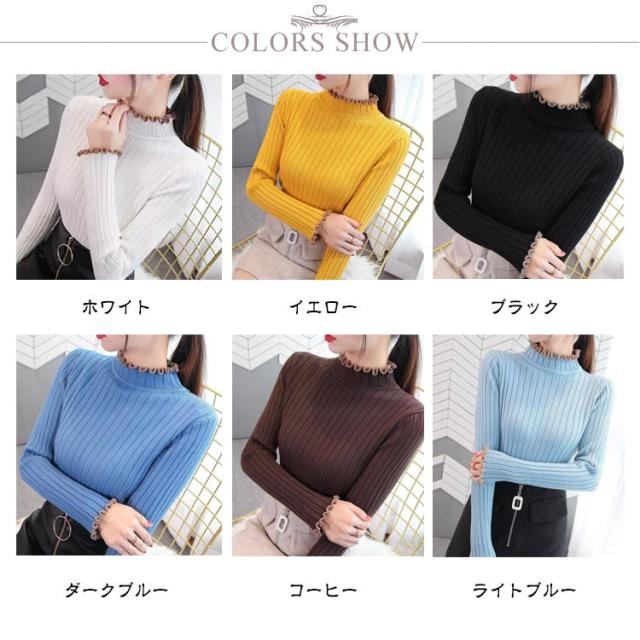 ニット ハイネック フリル ハイネック フリル フリル セーター 長袖 ニット スリム リブニット ハイネック フリル おしゃれ レディース きれいめ 春 かわいい 春 春秋 上品 大人 女性 フェミニン