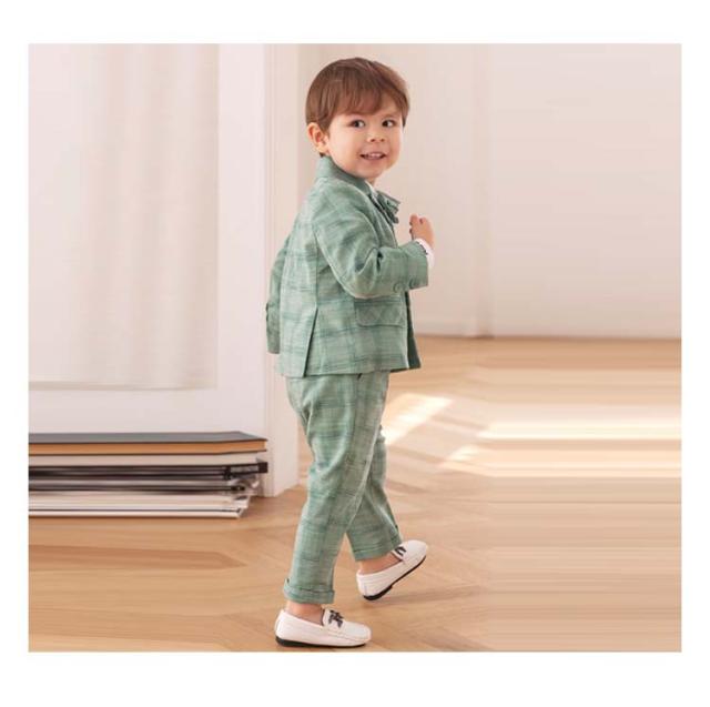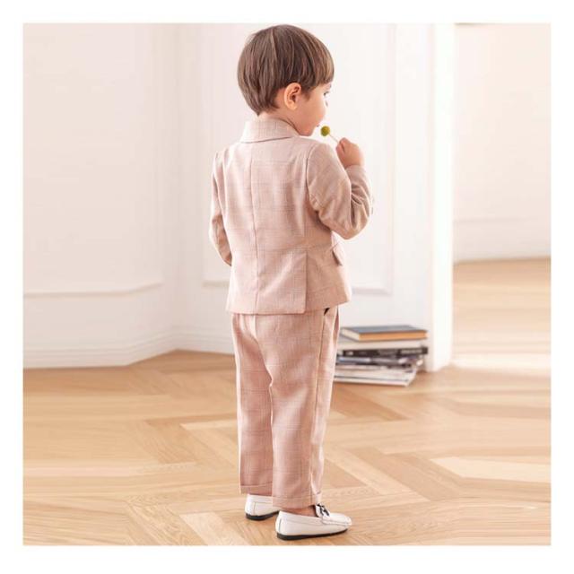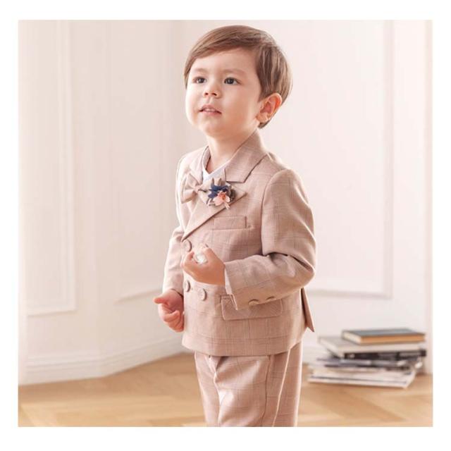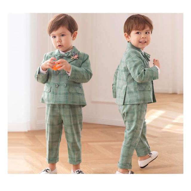| ジャケット・パンツ・ネクタイがセットになった、 ボーイズスーツです。 着心地らくらく、かっこいい! スリムシルエットの2つボタンジャケットで、いつもは元気いっぱいなキッズもすっきりスタイリッシュなルックスに。 卒園式や入学式、七五三や結婚式、晴れの日のコーデもばっちり! これ一式で、男の子ベビー・キッズも感動的にかっこいいフォーマルスタイルが叶います。 | |