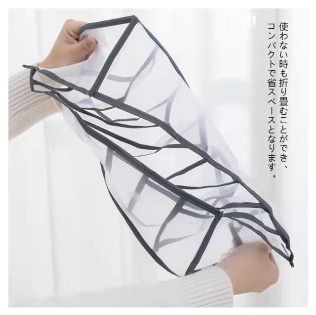 | ・靴下やズボン・ストッキングなど、小物整理にもおすすめの収納ケース。 ・通気性に優れたメッシュ生地はこもりがちな湿気を逃す為、安心してクローゼットやタンスに収納できます。 ・タンス・クローゼット・押し入れ・ベッド下の整理整頓や引き出し内のインナーボックスとしてもオススメです♪ ・使わない時も折り畳むことができ、コンパクトで省スペースとなります。 | |