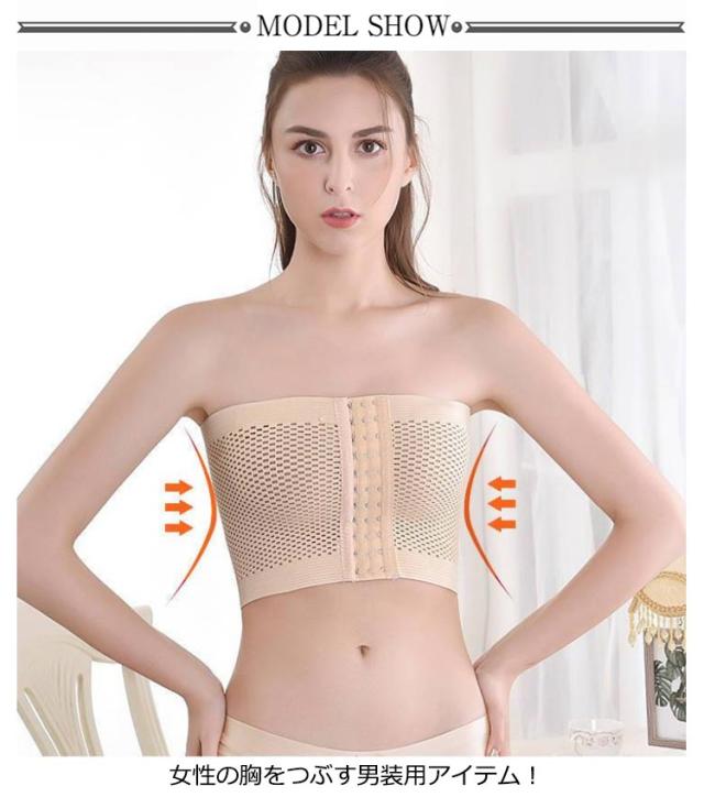 | 通気孔で肌にも優しい作りになっています。 インナーの上から着用できます。 女性の胸をつぶす男装用アイテム! 伸縮性素材でつけ心地やフィット感に自信があります。 締め付けるのではなく、上から押さえこむイメージなので根本から胸の揺れを解決できます。 | |