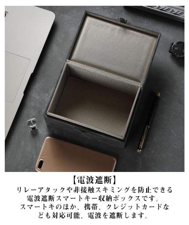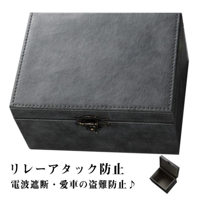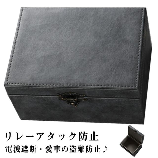 キーケース 箱 電波遮断ボックス スマートキー 対策 電波遮断ケース キーボックス 車盗難防止 リレーアタック防止用 電波遮断ケース RFIDブロッキング 高級PUレザー カーセキュリティ