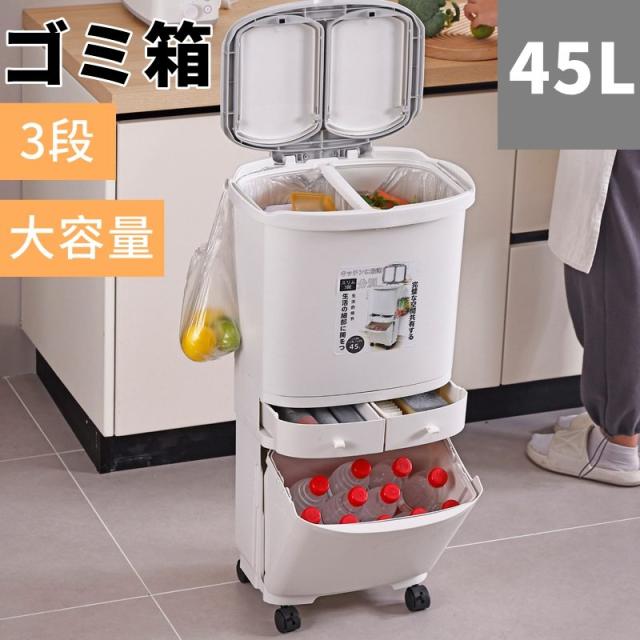 ゴミ箱 45L袋可 45リットル袋可 おしゃれ フロントオープン 分別 ダストボックス 積み重ね キッチン スリム シンプル 大容量 ふた付き 縦型 カウンター下