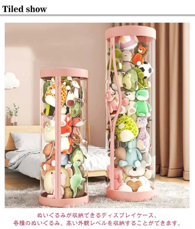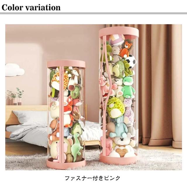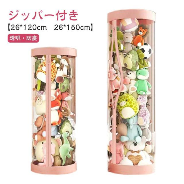 ぬいぐるみ収納ケース ジッパー付き ぬいぐるみ収納 円柱形 ぬいぐるみ収納 ケース 透明 ぬいぐるみ収納桶 大容量 陳列ケース 防塵 展示ボックス ぬいぐるみ収納ボックス 収納ケース ファスナー付き 取り出しやすい 簡単アクセス