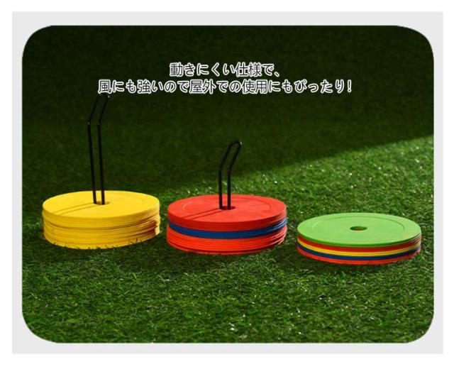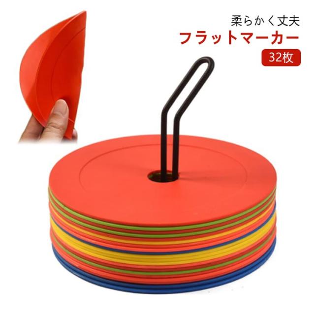 | 32枚 柔らかく丈夫 フラットマーカー 平らなマーカーの為、練習や試合の邪魔になりません。 動きにくい仕様で、風にも強いので屋外での使用にもぴったり! | |