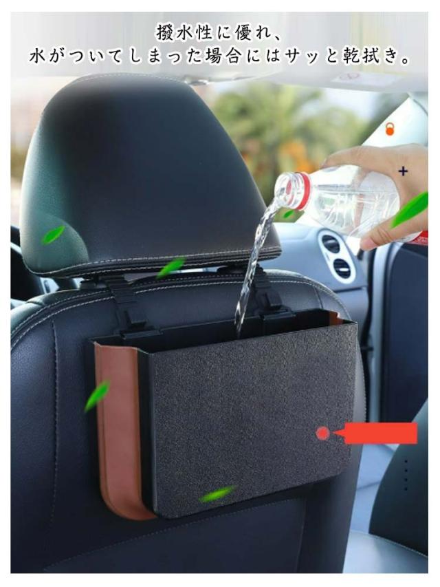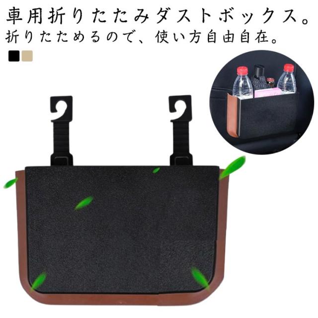 ダストボックス 車用 折り畳み式 カー用品 小物入れ 折り畳ゴミ箱 収納 車用 運転席 ゴミ箱 車用 ストレージボックス おしゃれ レザー スリム カーアクセサリ 引っ掛け 簡単 設置 便利 省スペース 多機能ごみ箱 ブラック