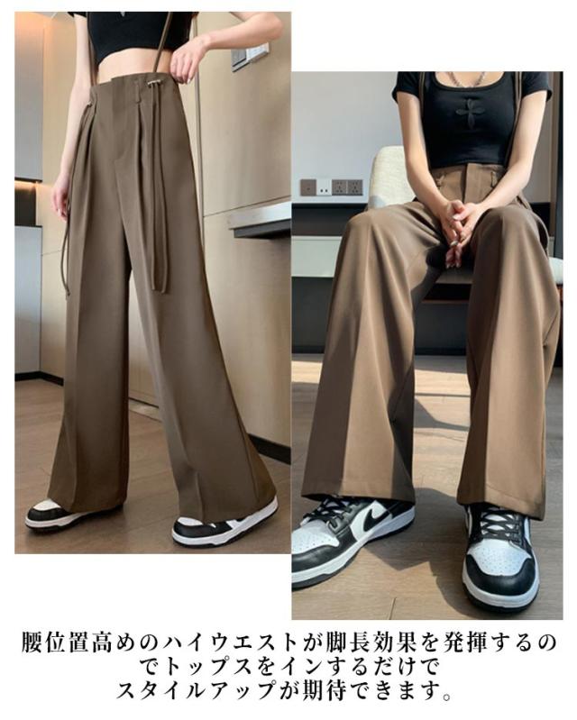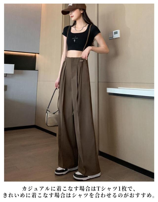 レディース パンツ セミワイド サスペンダー ストレート スラックス 2way タックパンツ スラックス サスペンダーパンツ ポケットあり カジュアル おしゃれ オフィスカジュアル 春
