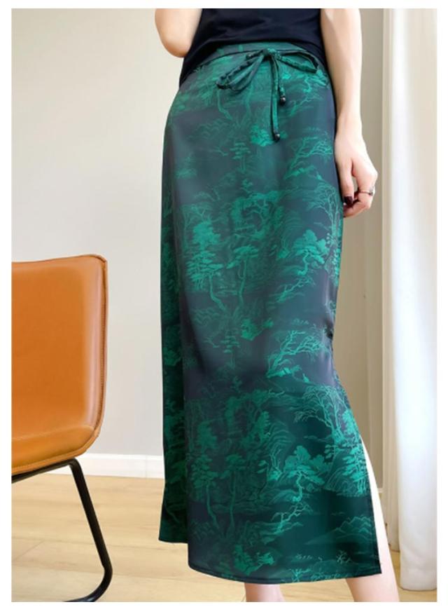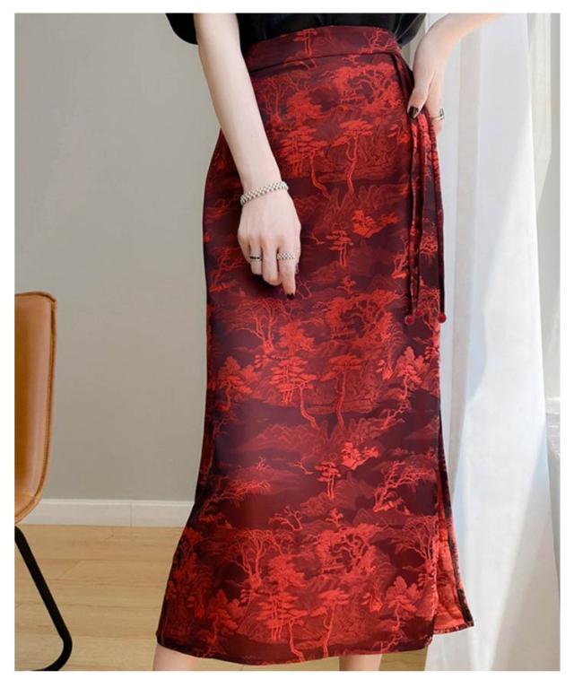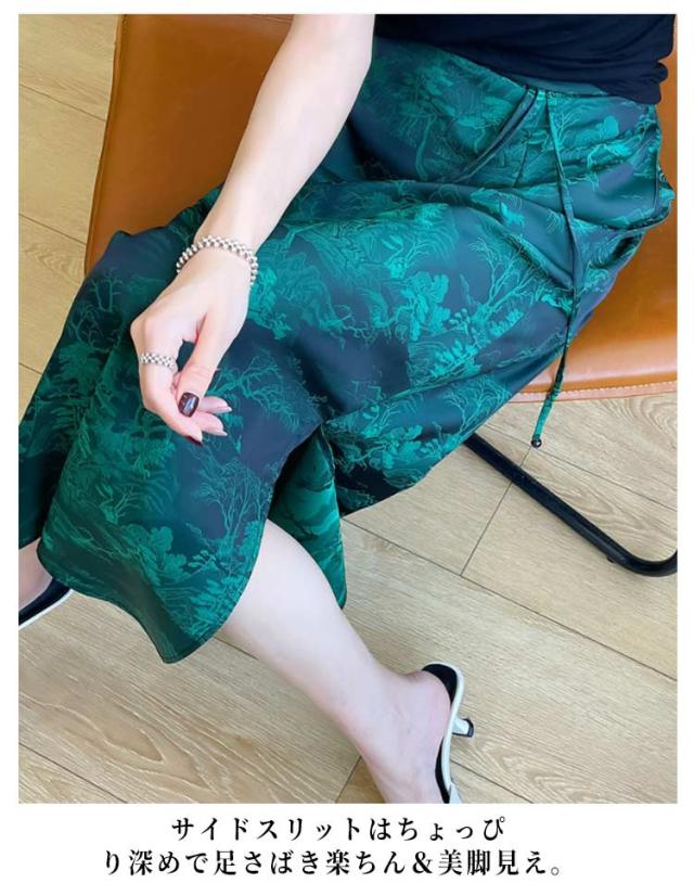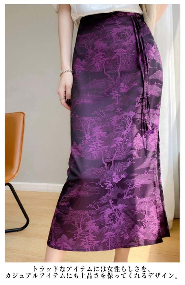 ポケットあり スカート 花柄 サテン サイドスリット Iライン チャイナドレス ロングスカート 上品 ボトムス タイトスカート エレガント エレガント 通勤 オフィスカジュアル