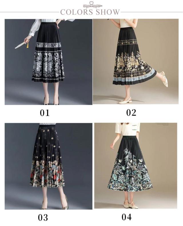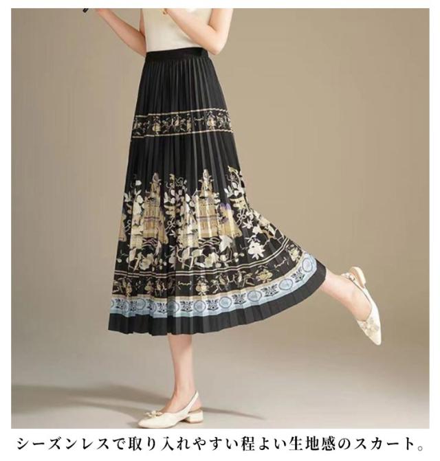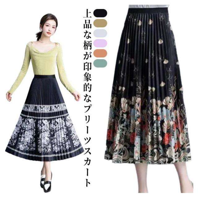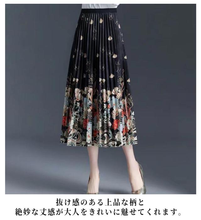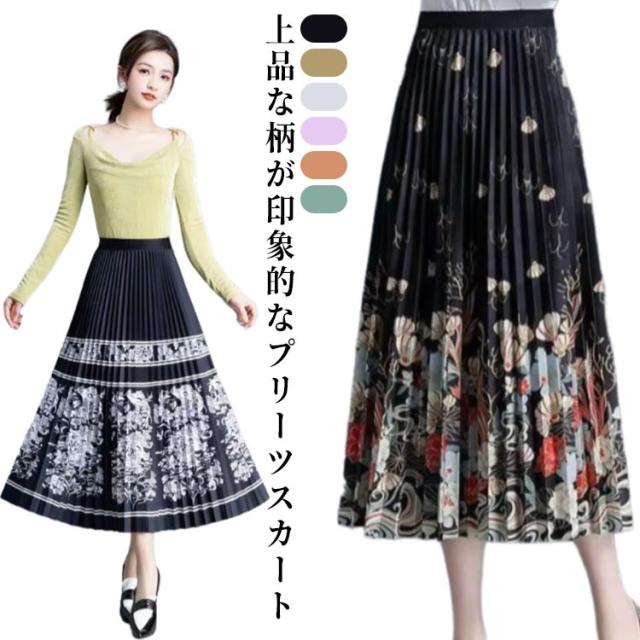 ロングスカート プリーツスカート フラワー エスニック 体型カバー 総柄 Aライン キレイめ プリントスカート プリーツスカート フレアスカート ウエストゴム 大人 上品 エレガント フリーサイズ 高級感 落ち感 揺れ感