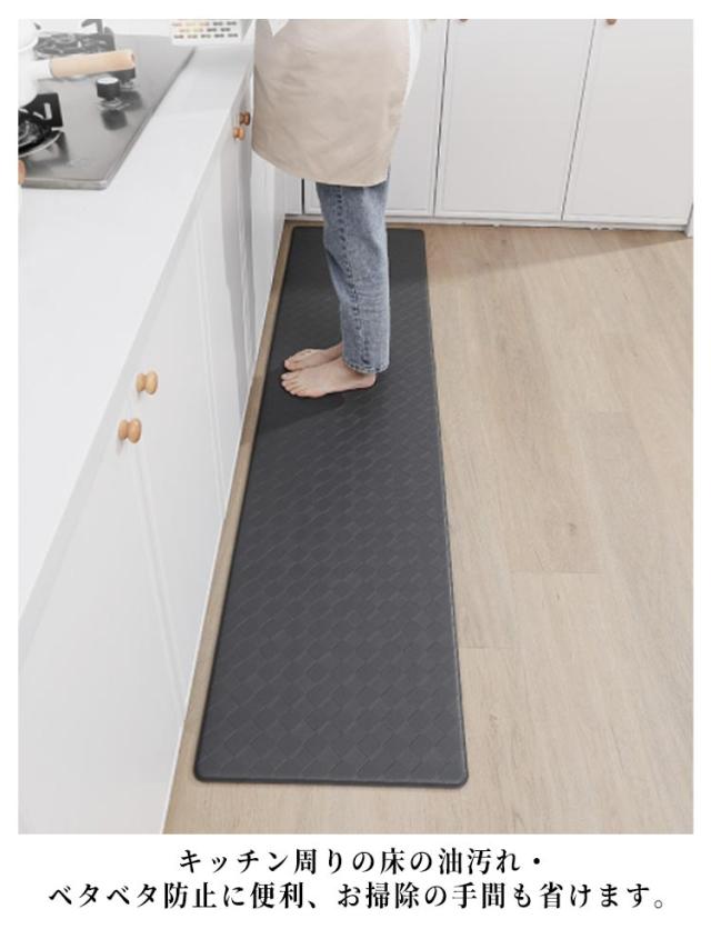 キッチンマット お手入れいらず 拭ける PVCレザー 防水 洗濯不要 45×240cm キッチンマット 滑り止め 高級感 マット インテリア 拭くだけ 低反発 クッション 衝撃吸収 疲労軽減 北欧