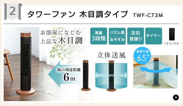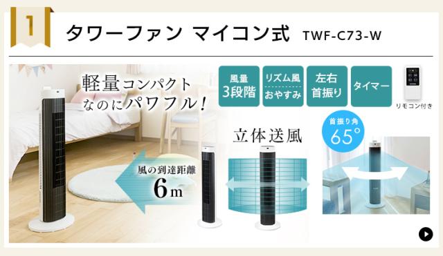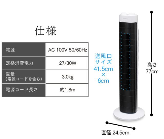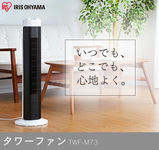 タワーファン 扇風機 スリムファン 羽なし タワー扇風機 スリム リビング 左右首振り コンパクト 切りタイマー付き 軽量 縦型 タワー型 ホワイト 風量 3段階 簡単操作 パワフル送風 寝室 低騒音 季節家電 アイリスオーヤマ TWF-M73 *