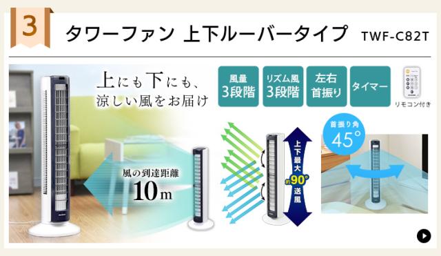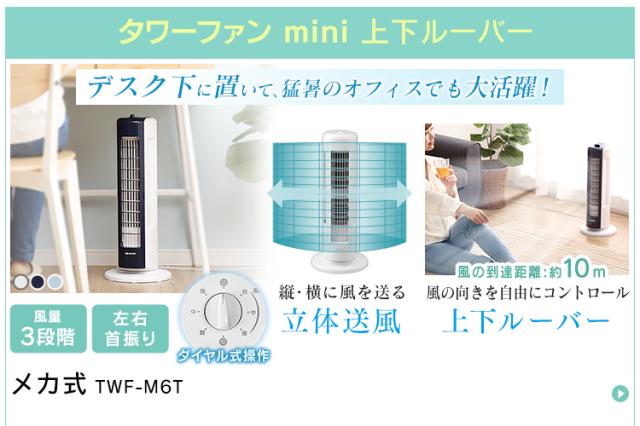 省スペースで広範囲に送風ができるタワーファン。